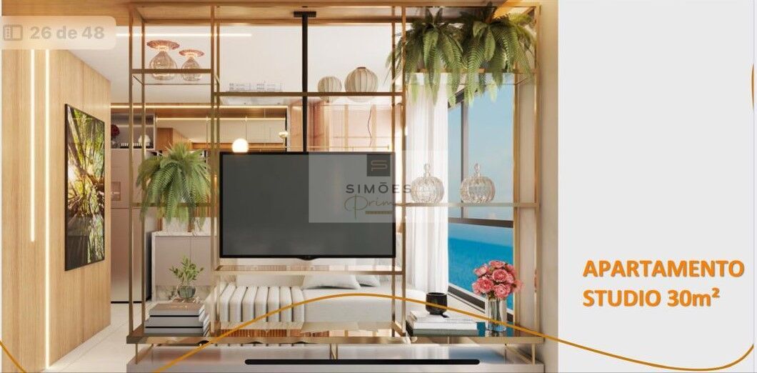 Studio com 30m², sendo um ambientes inteligente e muito aconchegante.