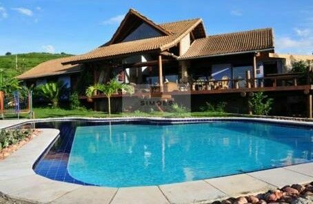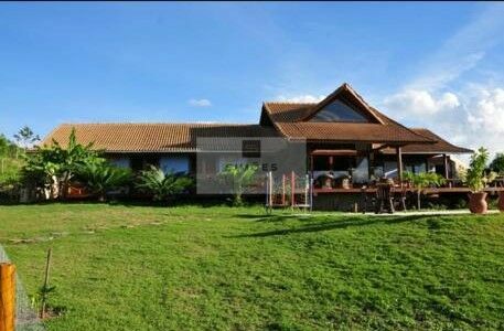 Terreno com 2.900m², casa com telhado feito de eucalipto trabalhado, com Pé direito com 5 metros e com 340m², com sala para 2 ambientes, 4 suítes, lavabo, 2 terraço, área gourmer com churrasqueira, cozinha, dependência completa.